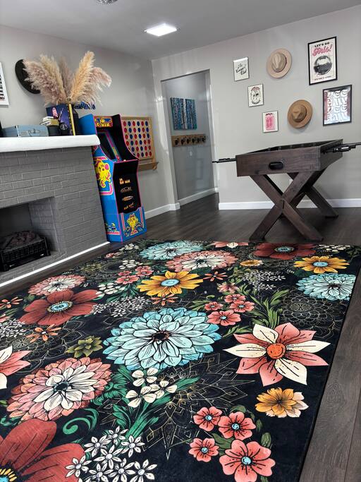 🌸 Location Highlights: Less than 6 miles from the iconic Wright-Patterson Air Force Base (WPAFB) Museum. Just 3 miles from the Rose Music Center, ideal for concert-goers. Conveniently located near Dayton, with quick access to restaurants, shops, and entertainment. 🌟 Why You’ll Love Dolly’s Haven: 💄 Glam It Up: Enjoy a custom makeup station with 4 mirrors and 3 full-length mirrors—perfect for getting dolled up! 🎮 Game On: Unwind with Ms. Pac-Man and foosball in the dedicated game room. 🎶 Southern Vibes: Dance under disco lights with tunes from the radio or record player. 📸 Picture-Perfect Walls: Capture memories in front of themed photo walls, including a neon sign, boxwood wall, and mural. 🤠 Country Touches: Take your best selfies with 4 cowboy hats provided for your use. 🛏️ Sleeping Arrangements: 1 King bed with an en suite (BR1) 2 Queen beds (BR2, BR3) 1 Full bed (BR4) ☕ Comfort & Convenience: Start your day with coffee from the Keurig, stocked with K-cups. Whip up meals in a fully stocked kitchen. Relax with your favorite shows on a 75-inch Roku TV. Pamper yourself with provided shampoo, conditioner, body wash, and a blow dryer/flat iron combo. Enjoy on-site laundry with detergent provided. 🌅 Outdoor Fun: Fire pit and seating. You just bring the wood. Kick back on the deck and covered patio, with seating for 6 and a grill for BBQs. Take advantage of free on-site parking. 🎟️ Your Perfect Stay: Whether you're in town for a concert, a museum visit, or a relaxing getaway, our thoughtfully curated recommendations ensure you’ll have the best experience. Traveling with little ones? We’ve got you covered with a Pack-N-Play and foldable highchair. Book your stay at Dolly’s Haven today and let the country charm welcome you to Huber Heights!